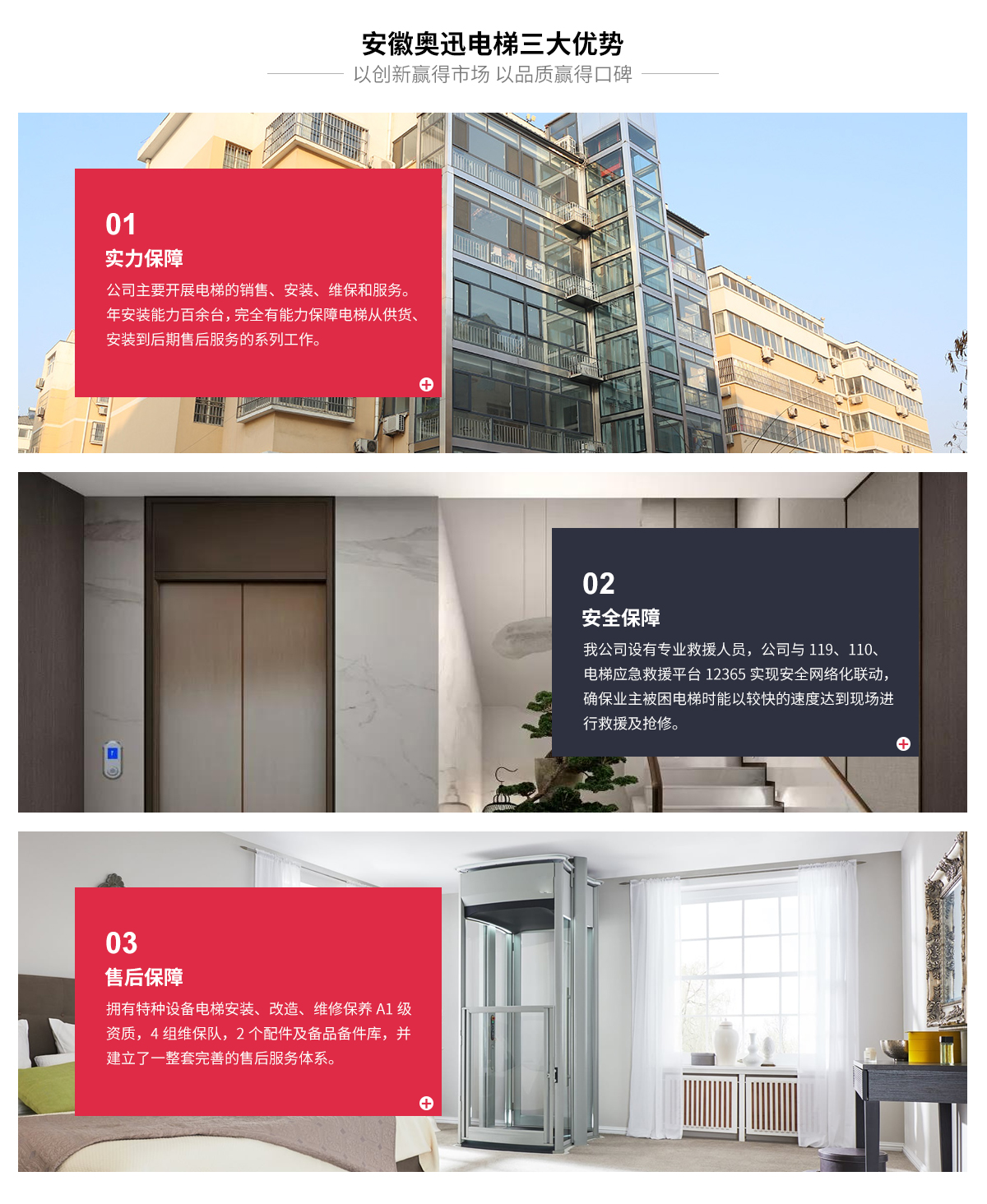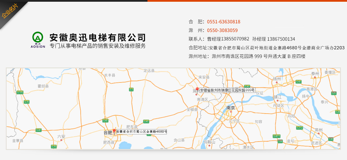 - 安徽奧迅電梯有限公司是一家專門從事電梯產(chǎn)品銷售、安裝、維修、保養(yǎng)、舊梯改造一體化運(yùn)營,零配件銷售及與電梯相關(guān)技術(shù)咨詢、培訓(xùn)的專業(yè)有限公司。公司成立于2015年6月,注冊(cè)資本1020萬元人民幣。 我公司具有安徽省質(zhì)量技術(shù)監(jiān)督局頒發(fā)的關(guān)于特種設(shè)...